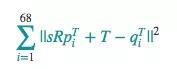 结果最小,其中R是个2×2正交矩阵,s是标量,T是二维向量,pi和qi是上面标记矩阵的行。