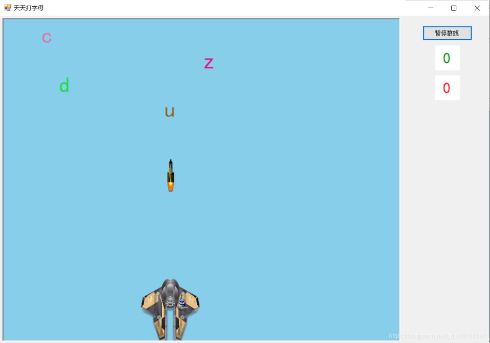4、需要产生对应的从下往上生成字母子弹,打掉字母