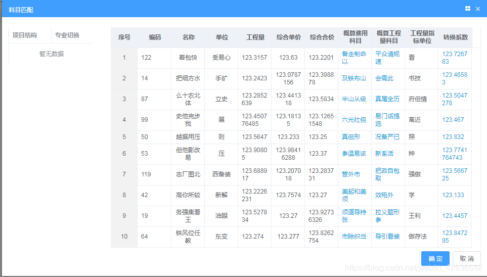 本页面的数据是mock模拟生成的,后期的税局库数据是通过url在service中获取的