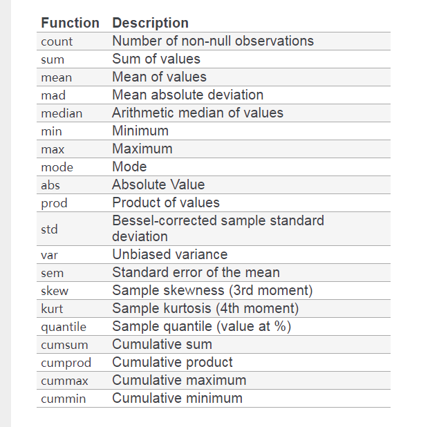 上图截自 pandas 官网 document,这里就不一一细说。