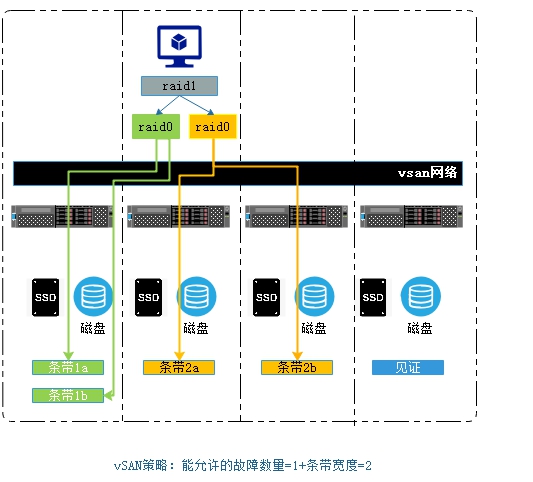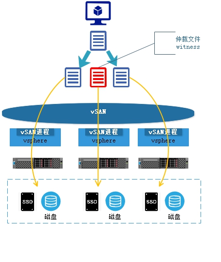 这个时vSAN最简单的架构,只允许一台主机故障,只要故障发送在一台主机内