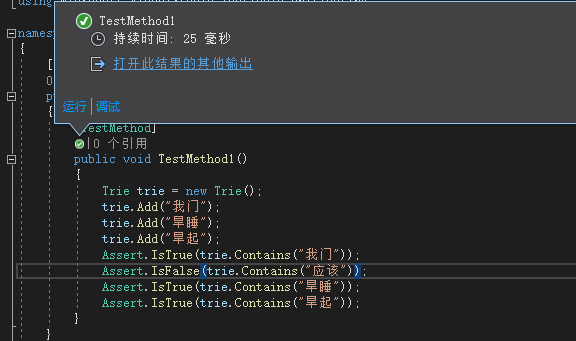 到此这篇关于C#实现前向最大匹、字典树(分词、检索)的示例代码的文章就介绍到这了,更多相关C# 前向最大匹、字典树内容请搜索自学编程网以前的文章或继续浏览下面的相关文章希望大家以后多多支持自学编程网!