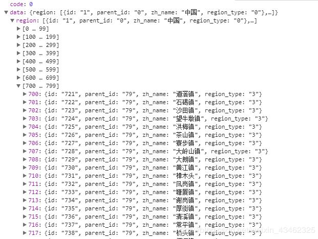 把整理好的省市区分别遍历一下,把当前的id与数据中的id作对比。把相对应的数据的下标给取出来。