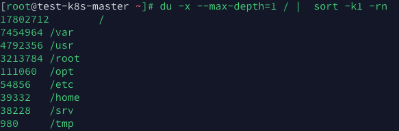 du -x --max-depth=1 / | sort -k1 -rn #-x 表示跳过其他文件系统
