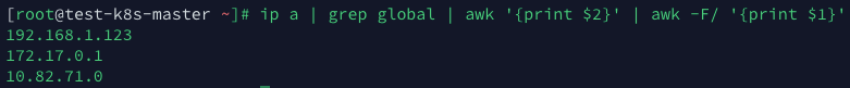 ip a|grep "global"|awk'{print $2}'|awk -F/'{print $1}'