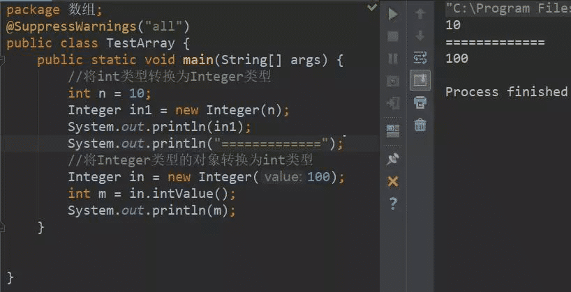 在实际转换时,使用Integer类的构造方法和Integer类内部的intValue方法实现这些类型之间的相互转换,实现的代码如下: