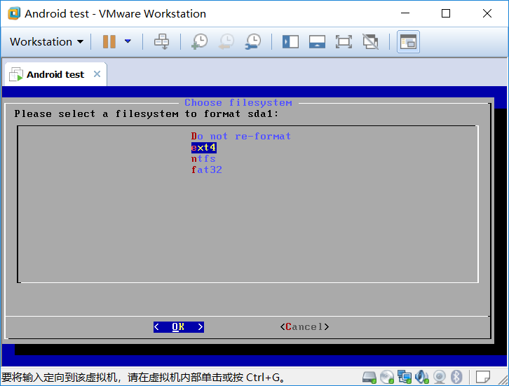 这一步安装程序要我们选择要格式化的文件系统类型,选择ETX4,选OK回车下一步。