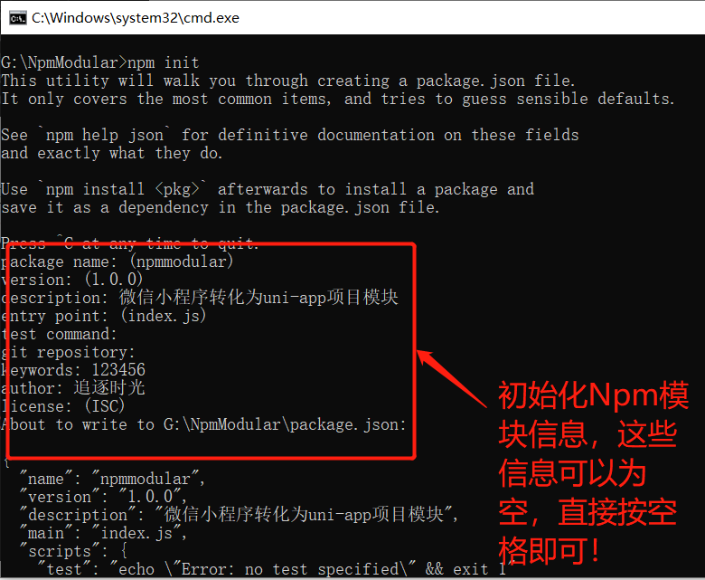 第二步、初始化一个NPM模块:首先查看NPM版本: