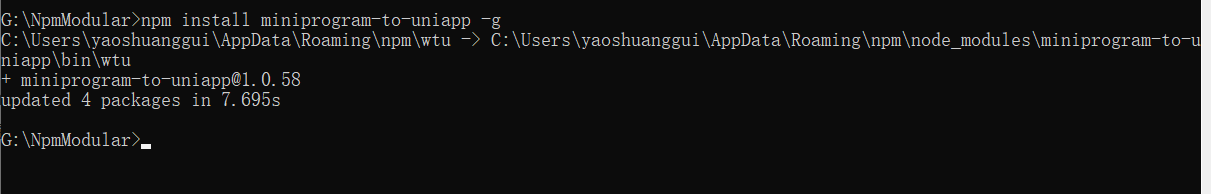 因为这个包是工具,要求全局都能使用,所以需要-g进行全局安装,运行以下命令进行安装: