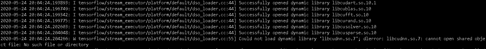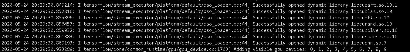 如果找不到,那可以试试跟我一样先把这些文件下载到机器上面,给系统添加环境变量到对应这些文件的目录,引导tf去找。当然,这只是我一种猜测,tensorflow2.1和2.2用的应该都是cuda10.1,但是我不清楚为什么2.2只有一个文件无法打开,而2.1就有好几个文件打不开,而在1.9版本上,由于1.9似乎用的不是10.1版本的cuda,其错误原因更多,这里要区分开。