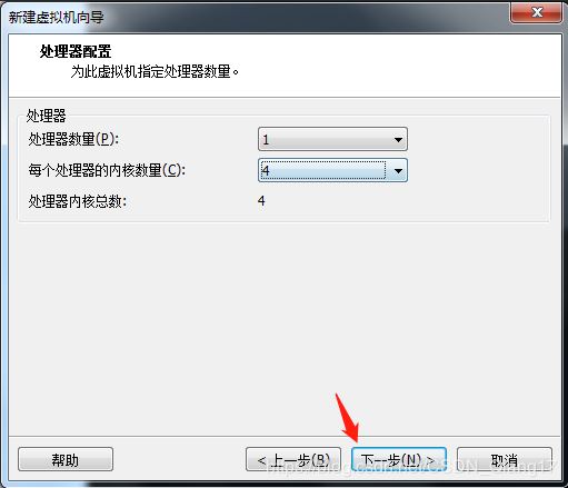 根据自己电脑来选择虚拟机处理数量
