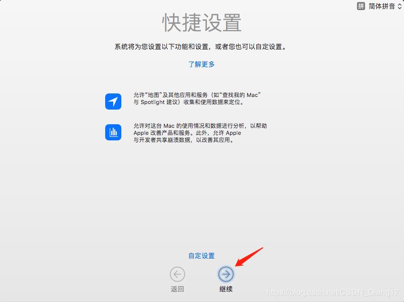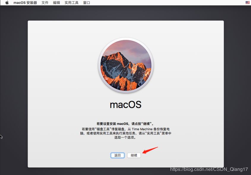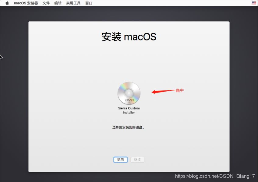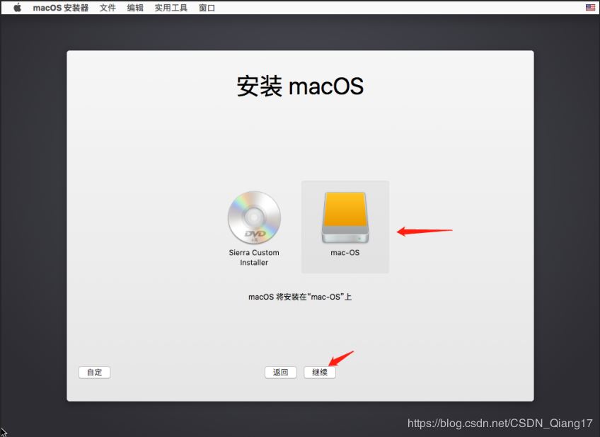 28. 选择磁盘【mac-OS】,点击【继续】
