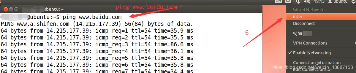 步骤4、保存退出,选择刚设置好的inter,即可上网,ping百度测试: