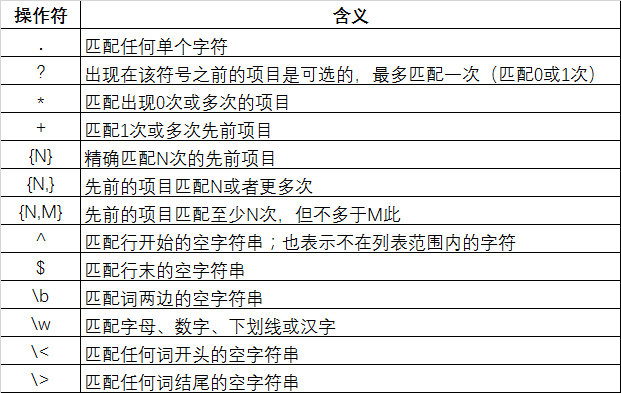 下面是常用的正则表达式操作符: