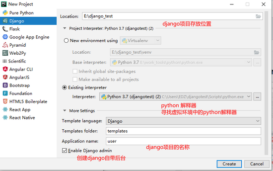 在pycharm中创建django项目的示例代码