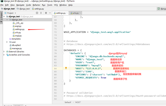 所以我们需要进入settings中更改数据库的配置