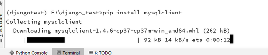 现在没有mysql相关的模块所以启动django会报错,安装一下mysqlclient库。