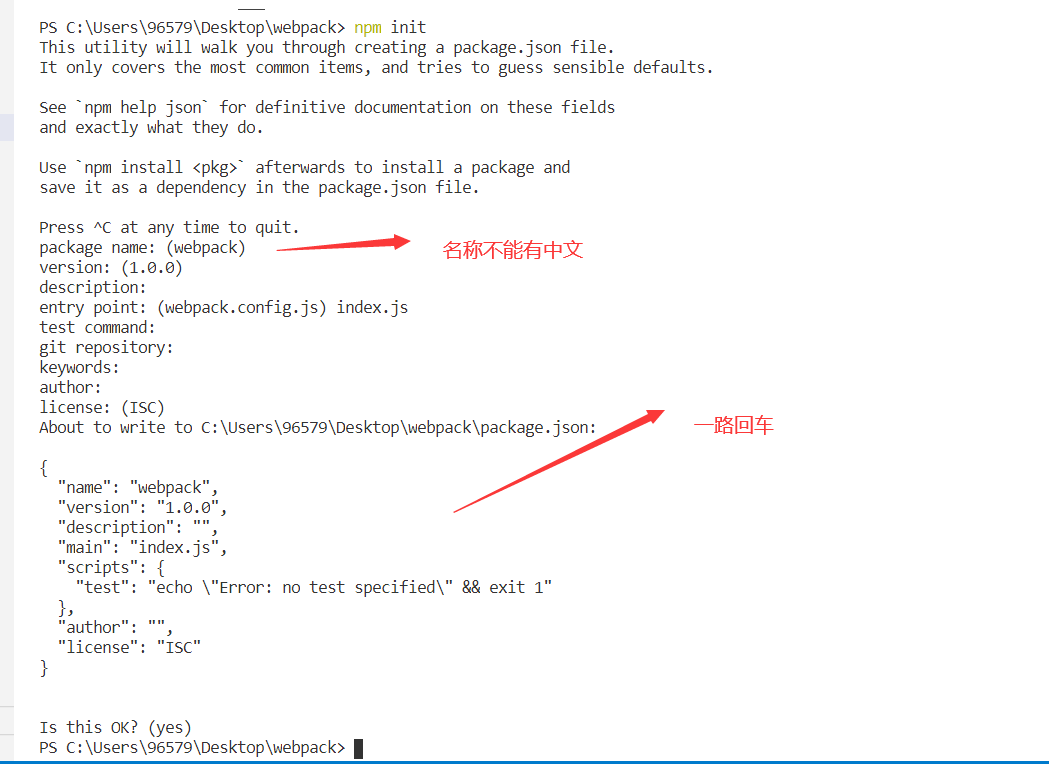在webpack目录中生成了package.json