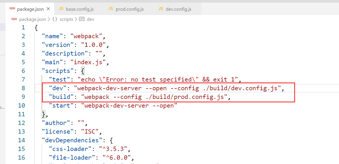 如果在package.json中定义了script,其中包含了webpack命令,那么使用的是局部webpack