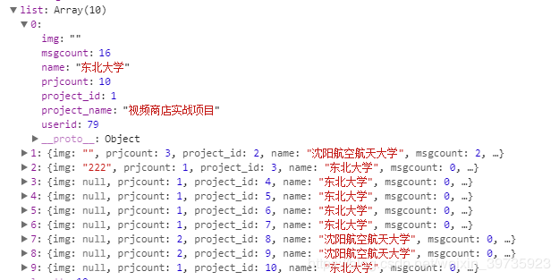 后台返回数据类型: