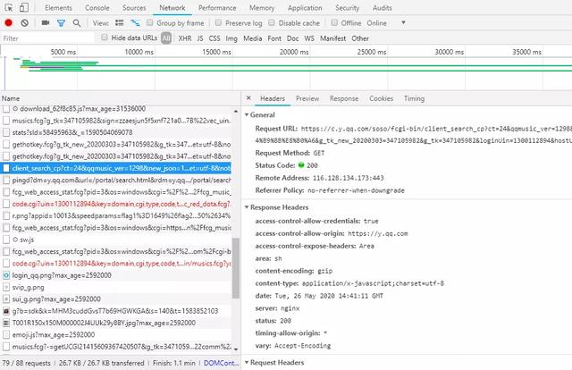 瞧见是不是很头疼,别担心,你只需要这些(https://c.y.qq.com/soso/fcgi-bin/client_search_cp),后面的都是参数(说法不是很准确)
