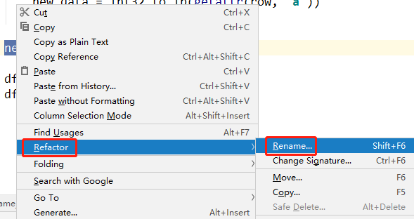 然后右键点击这个变量,找到Refactor,然后再选择Reanme