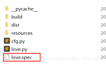 然后新建一个.spec文件,当然,为了方便,你可以直接打开刚刚生成的那个.spec文件(就是运行最前面那个打包命令时,也会根据你的命令来生成一个love.spec文件),类似这样: