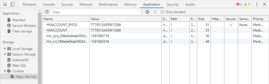 因为浏览器访问地址的路径 /health-devSet-Cookie 的 Path /health 不匹配,所以浏览器并不会将其值存入Cookie中,如图