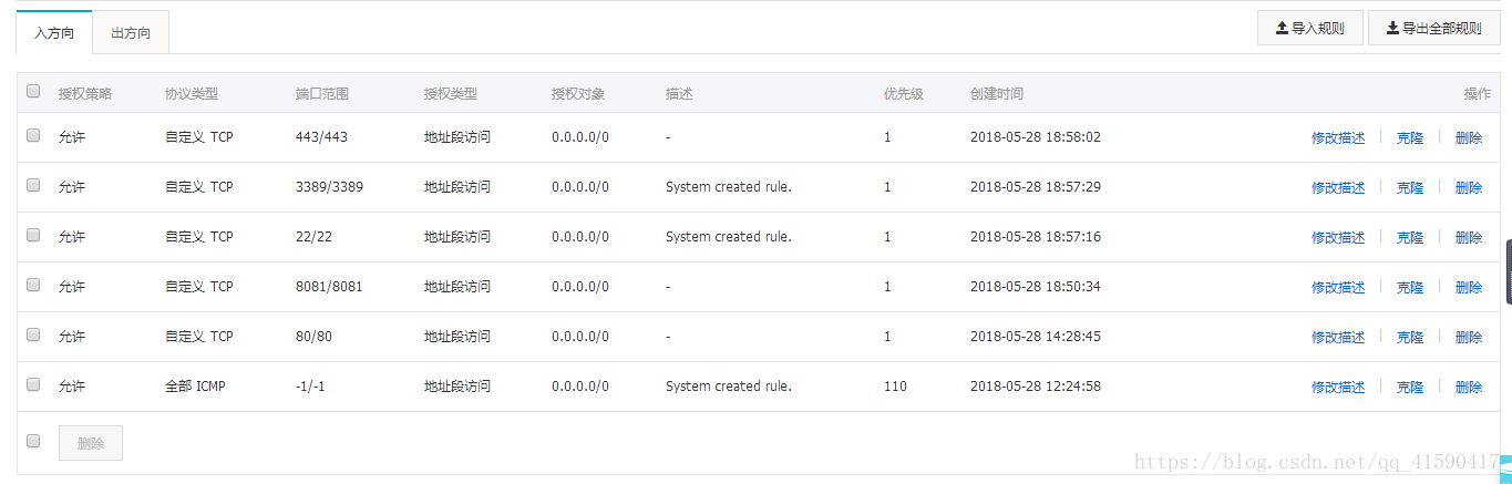这里先简单的说一下阿里云服务器,我自己买的是云服务器ESC,需要配置一下安全组规则,就是端口,按下图配置即可,最重要的是22和88端口。