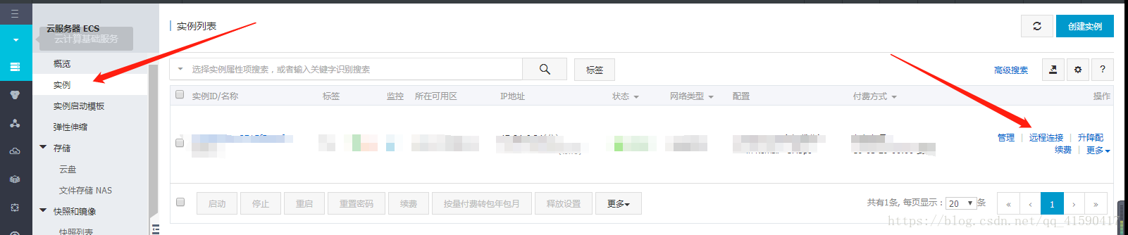 然后就是我们的服务器在实例里,我的是Ubuntu16.04,要部署到阿里云上点击远程连接,第一次点击会弹出一个密码,这就是你在阿里云登录远程连接的密码,一定要记好,就会弹出这一次!