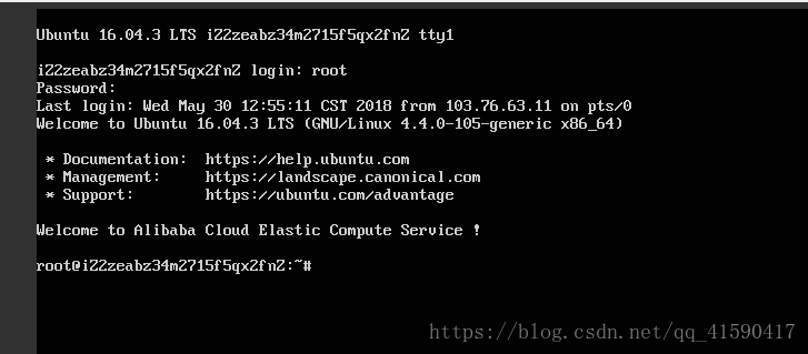 输入密码之后就进入了Ubuntu命令行模式,这时候你输入你的Ubuntu账号,默认root,然后输入密码,密码是你在买服务器时候就设置的,成功之后就进入了Ubuntu系统,我们整个部署过程都是在这个Ubuntu系统里,命令行下进行。所以需要你多少掌握一些Ubuntu命令行的知识!