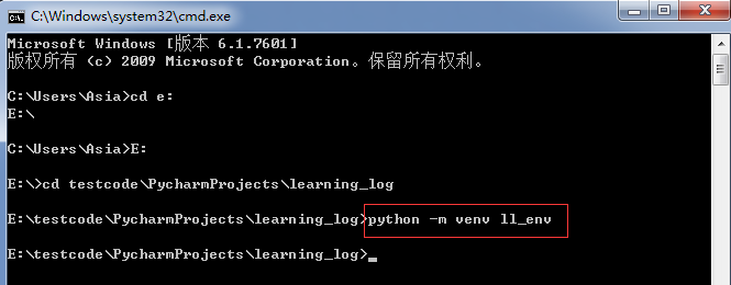 这里运行了模块venv,并使用它创建一个名为ll_env的虚拟环境