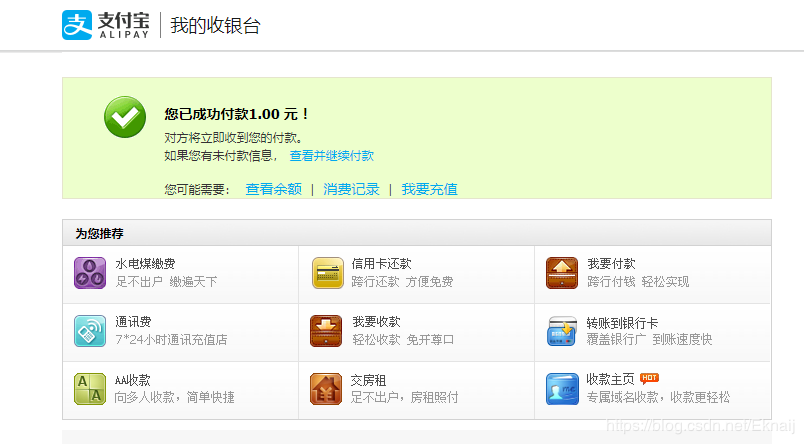 输入订单号,订单名称,金额,就可以跳转到支付宝的支付页面了: