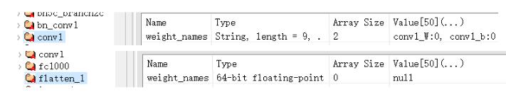 前面通过HDFView看过每一层有一个[“weight_names”]属性,如果不为空,就说明该层存在权重数据。