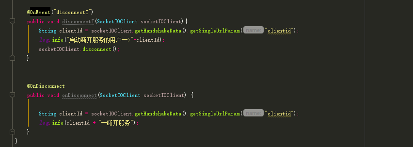 这是实现了监听disconnect()函数的注解,类似于切面的后置通知,当用户断开连接后再执行。