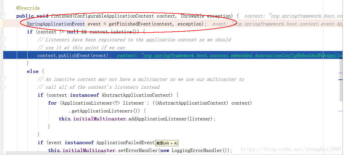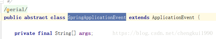 在容器启动完成后会广播一个SpringApplicationEvent事件,而SpringApplicationEvent事件是继承自ApplicationEvent时间的,代码如下:
