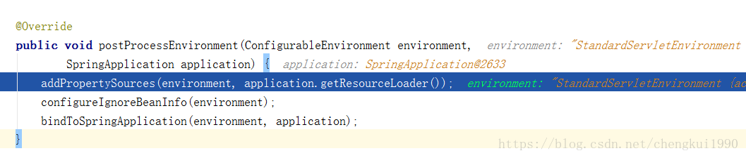 postProcessEnvironment方法是查找application.yml配置文件的入口方法: