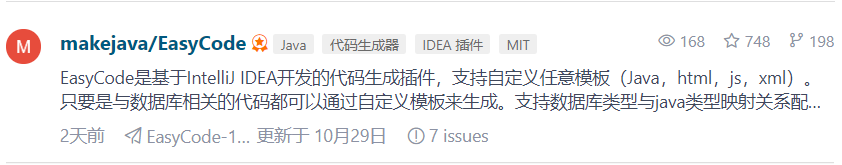 之前写SpringBoot项目,每次都要手动去写实体类、dao层啥的,尤其是数据库表字段特别多的时候,特别麻烦。然后很多小伙伴都会用逆向工程来自动生成这些类,省去许多没必要的代码量,但是Mybatis的逆向工程依然需要配置,导逆向工程的jar啊,还有编写generatorConfig.xml文件啊(有兴趣的朋友可以看看这篇文章)。今天逛gitee的时候,看到了一款可以免去许多配置的idea逆向工程插件,几个步骤简单使用一下