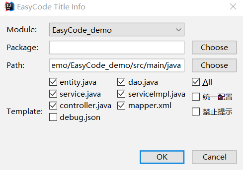 这里选择项目模块,还有需要生成的代码