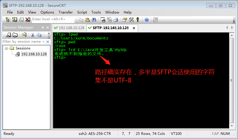 如果 lcd或cd 后面跟的目录明明存在,却报“系统找不到指定的文件。”,那多半是你路径中含有中文,而当前SFTP会话使用的字符集编码又不是UTF-8(SFTP对话框中中文乱码往往也是这个原因):