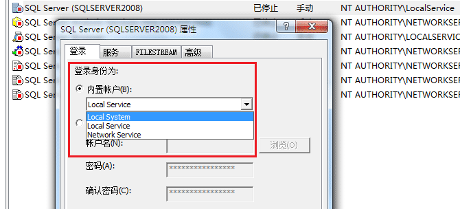 (实例的登录身份变为LocalSystem)