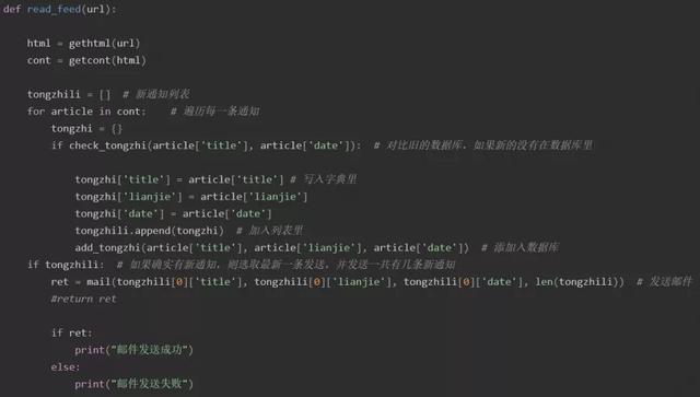 二是,若检测到目标网站有新的通知,则将新通知数据插入到数据库中,然后,发送提示电子邮件。
