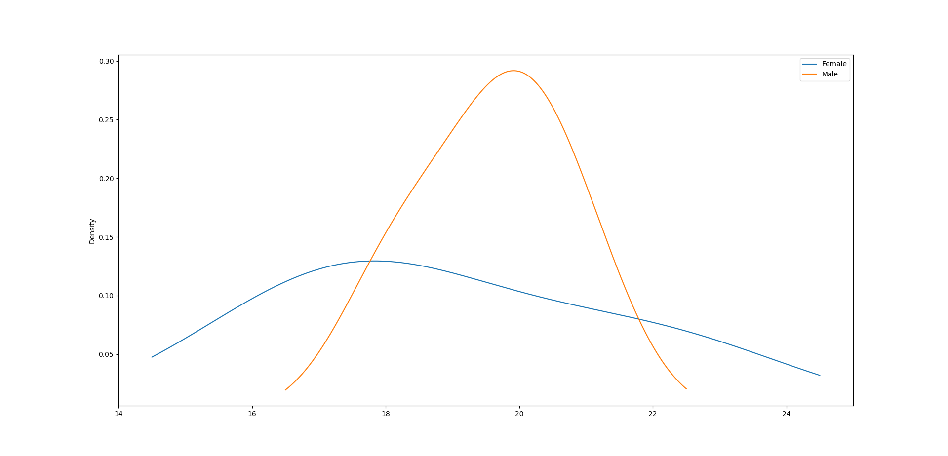 grouped['Age'].plot(kind='kde', legend=True) plt.show()