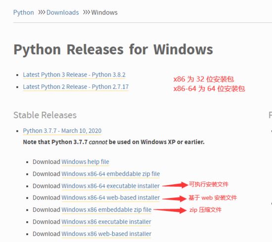 上诉3种安装方式最终结构都是一样,这里我们直接就下载 本地安装版本 Python 3.7.7 - Windows x86-64 executable installer 。