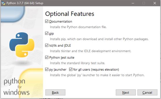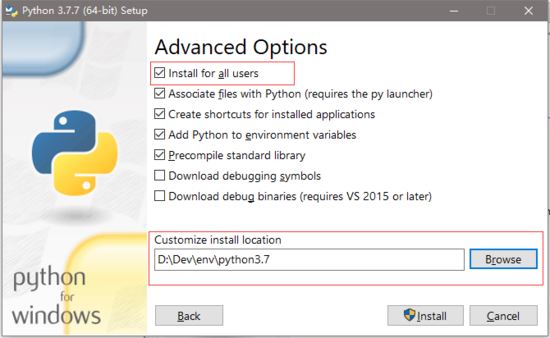 - 选择 Install for all users ,把 Python3.7设置为全局环境。