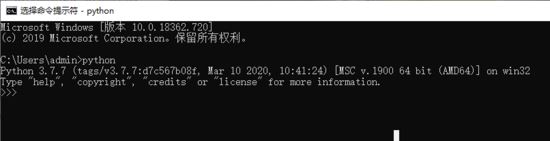 验证是否安装成功,可以在 cmd命令行下输入命令 python ,出现下图