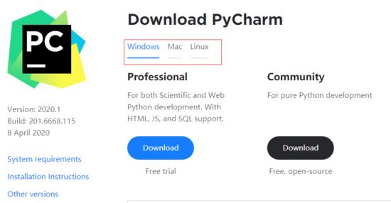 PyCharm 分三种系统,两个版本。系统就不多说啦根据自己电脑选就好。关键是版本: