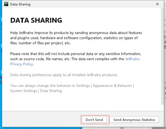 下图询问 是否共享个人使用数据,异常情况。 这里看个人,我选择 否(Don't Send)