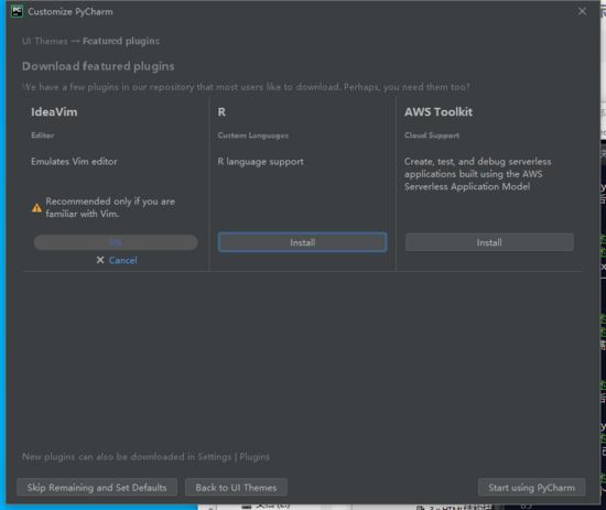 是否安装一些额外的插件,这里根据自己需要安装,开始使用 PyCharm (Start using PyCharm)