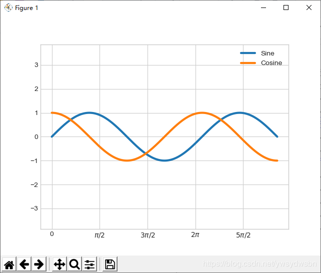 这样就好看多啦!其实我们已经用了 Matplotlib 支持 LaTeX 的功能,在数学表达式两侧加上美元符号( $ ),这样可以非常方便地显示数学符号和数学公式。在这个示例中, " $ \pi $"就表示圆周率符合 π 。